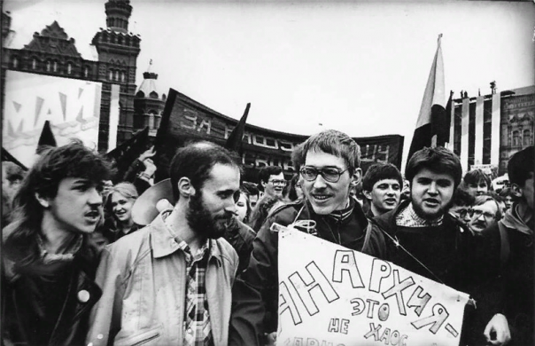 Первый выход общества «Мемориал» и бывших политзаключенных на Красную площадь во время первомайской демонстрации 1990 г. (фото Дмитрий Борко)