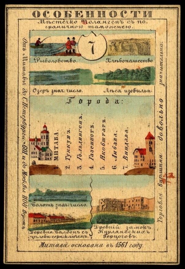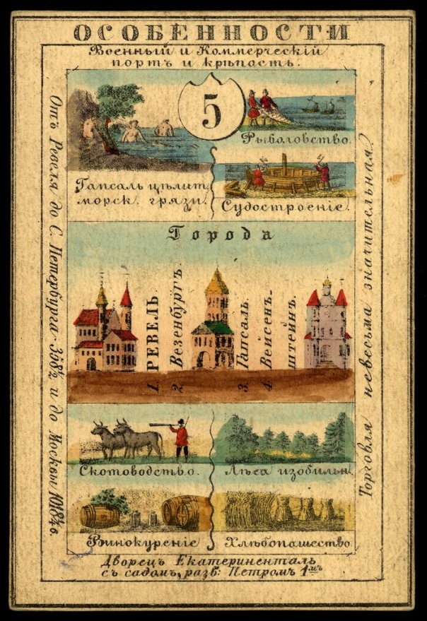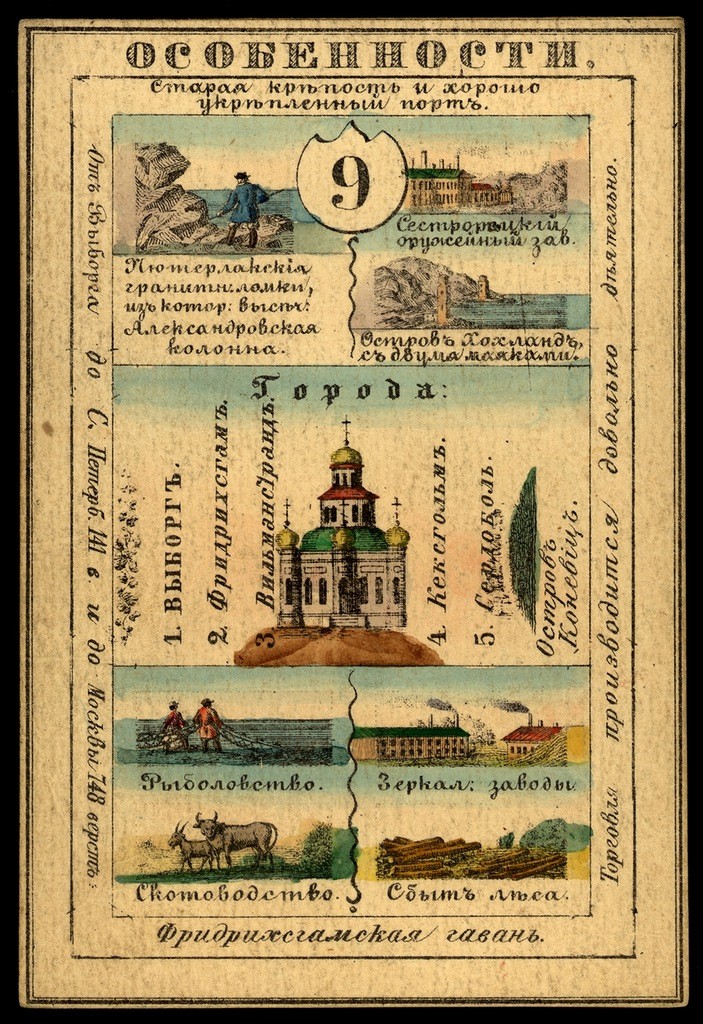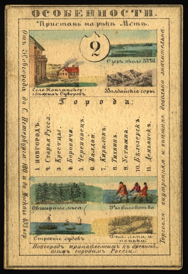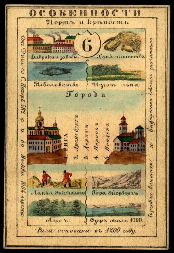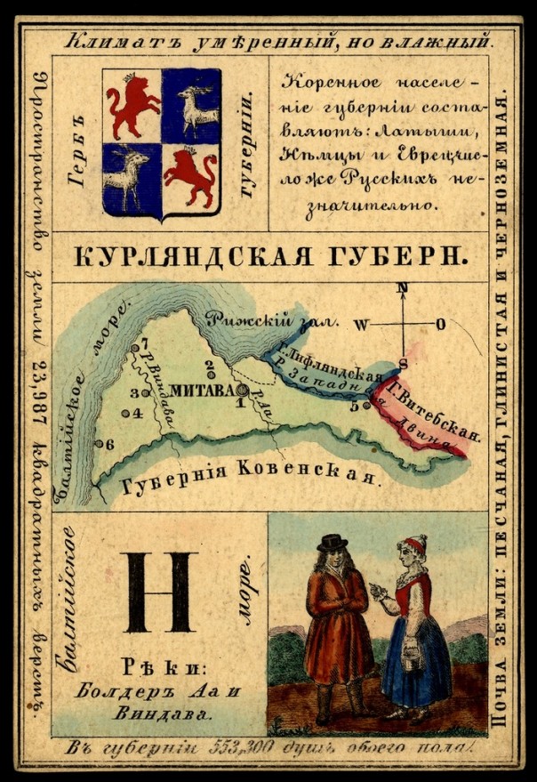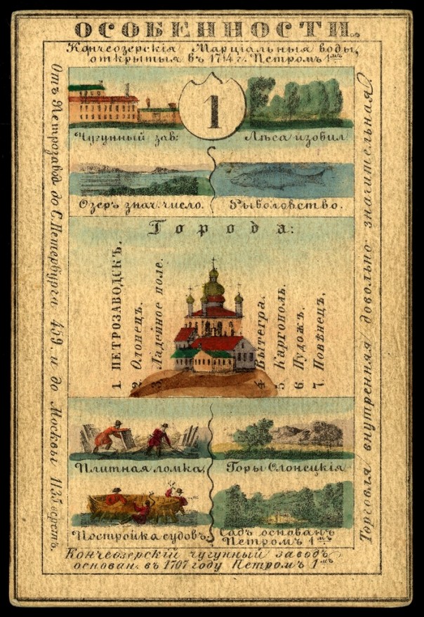 Открытки из сувенирного набора (состоящего из 80 двухсторонних иллюстрированных открыток), по одной на каждую провинцию Российской Империи в том виде, как она существовала в 1856 году. На каждой открытке представлен обзор культуры, истории, экономики и географии провинции. На лицевой стороне открытки описаны главные отличительные особенности провинции: реки, горы, крупные города и ключевые отрасли промышленности. На оборотной стороне каждой открытки изображены карта и печать провинции, приводится информация о населении, а также изображена традиционная одежда местных жителей.