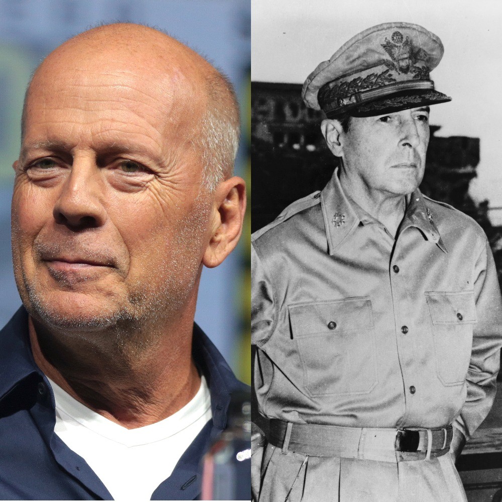 7. Брюс Уиллис и американский полководец Дуглас Макартур