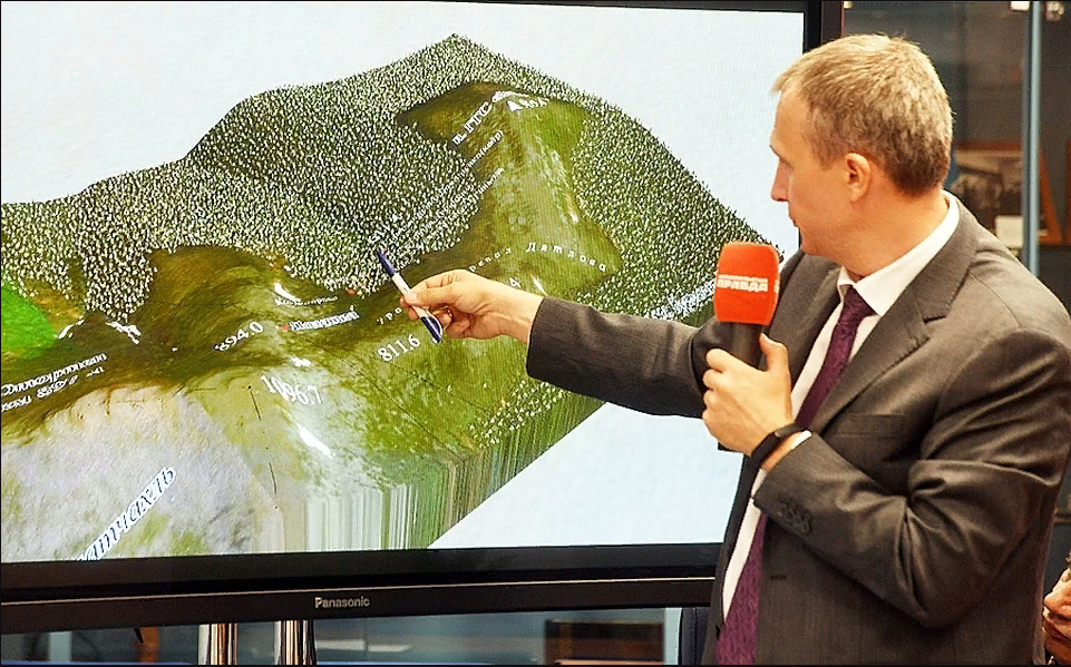 - Изготовление интерактивной 3D модели района «перевала Дятлова» с нанесением мест расположения палатки, трупов туристов, кедра, которая в дальнейшем использована при назначении и проведении специальных экспертиз и исследований.