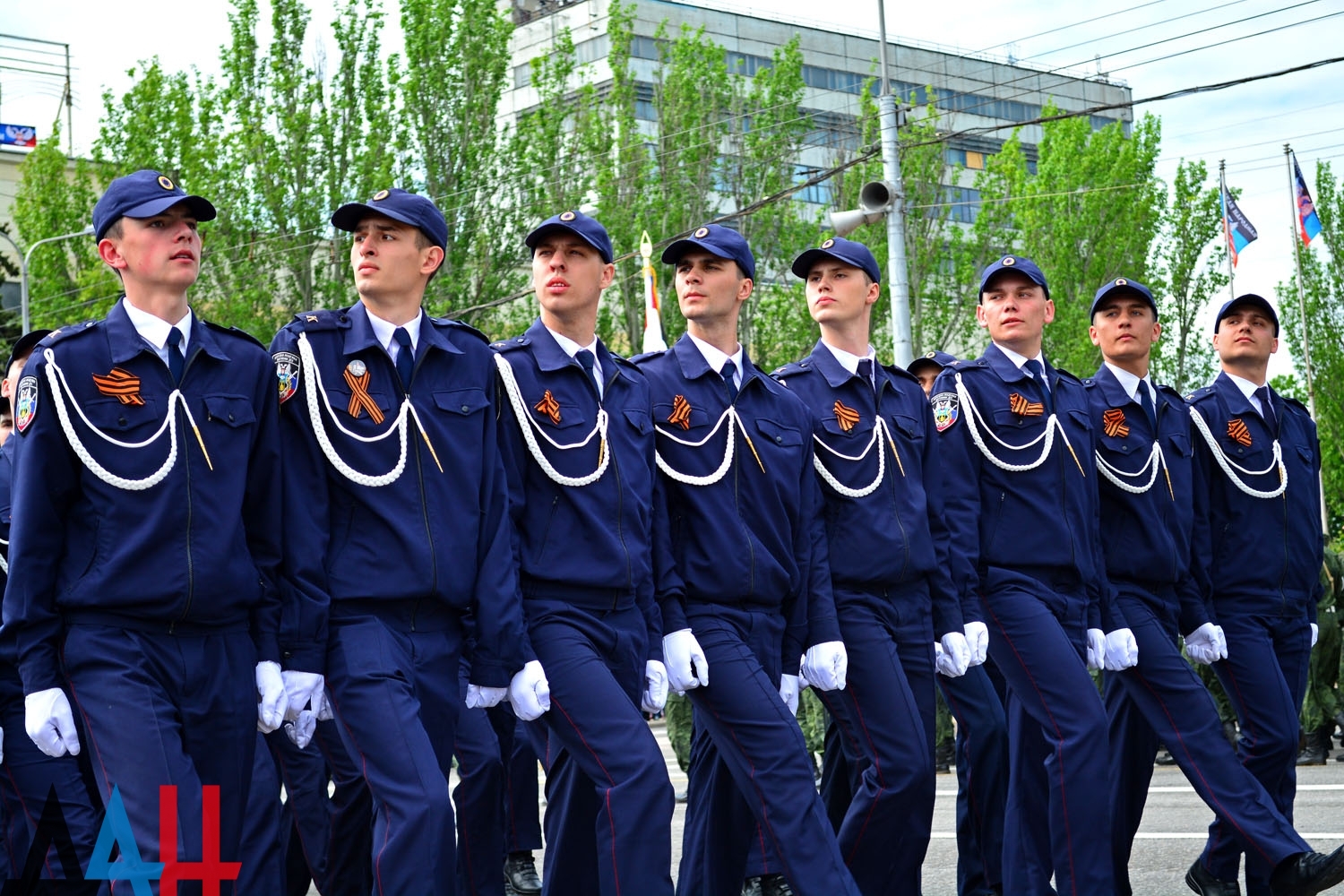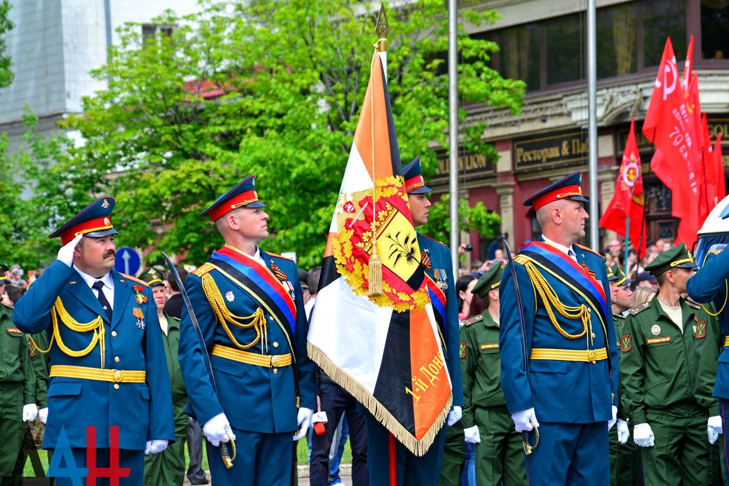 Военный парад в честь 71-й годовщины Победы в Великой Отечественной войне прошел сегодня в Донецке. Торжественным маршем по центральной улице столицы прошли военнослужащие, сотрудники МЧС и МВД, курсанты военных училищ.