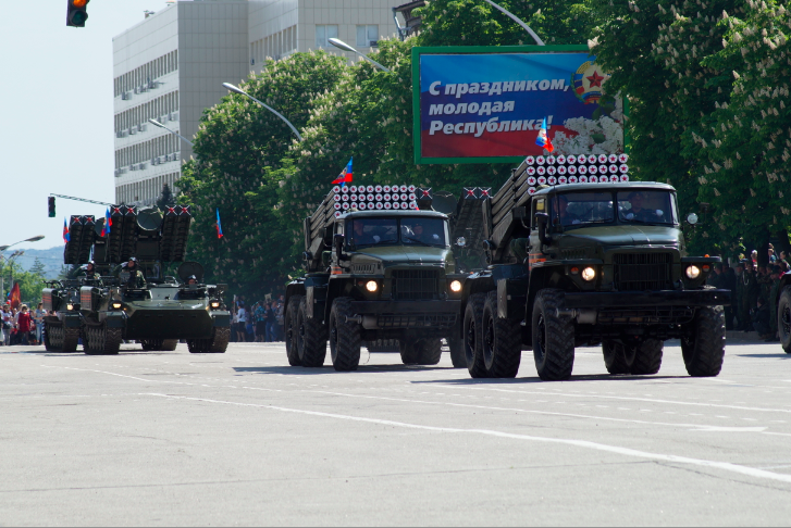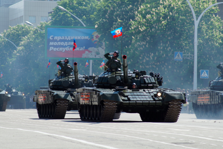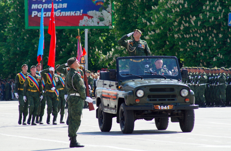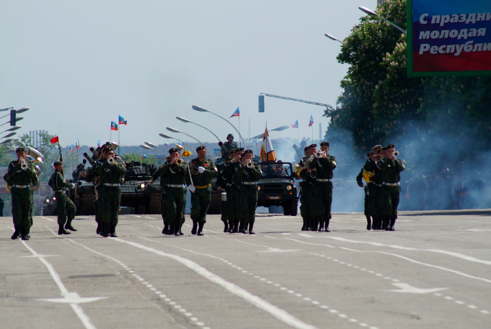 Утром на Театральной площади Луганска состоялся военный парад, в котором приняли участие порядка 1 тыс. военнослужащих Народной милиции, сотрудников правоохранительных органов Республики, а также воспитанники кадетского корпуса имени героев "Молодой Гвардии" и сводный оркестр. Принимал парад глава ЛНР Игорь Плотницкий, командовал парадом начальник управления Народной милиции полковник Олег Анащенко. По центральной площади Республики прошли танки Т-72, БМП и БТР, пусковые установки реактивной системы залпового огня "Град", самоходные и буксируемые артиллерийские установки.