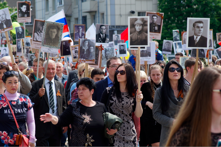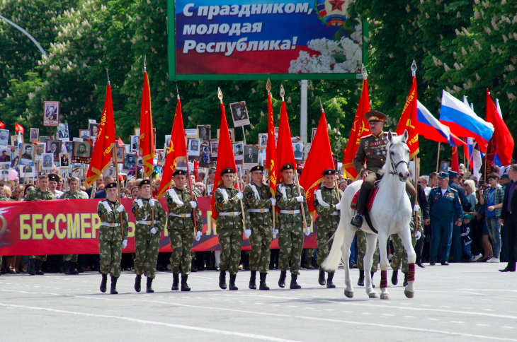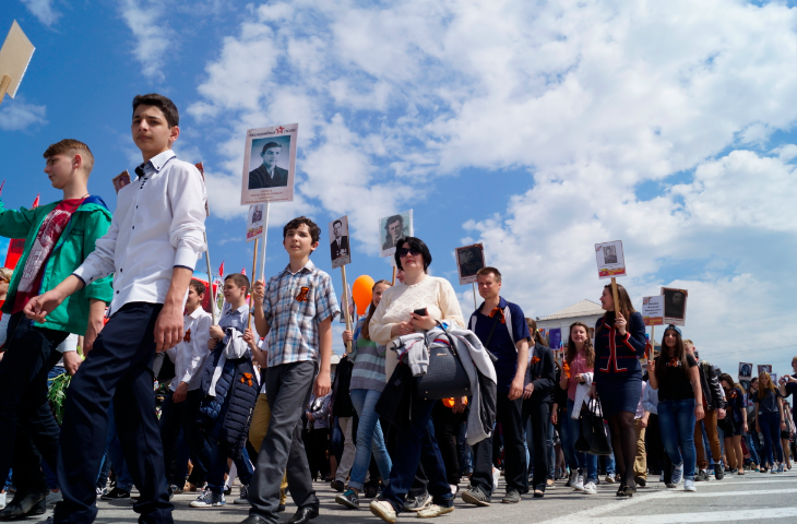 Десятки тысяч жителей Республики также присоединились к двум колонам "Бессмертного полка". Участники одной из них несли портреты своих родственников, защищавших Родину в Великой Отечественной войне, второй – портреты погибших при защите Республики в ходе украинской агрессии в Донбассе.