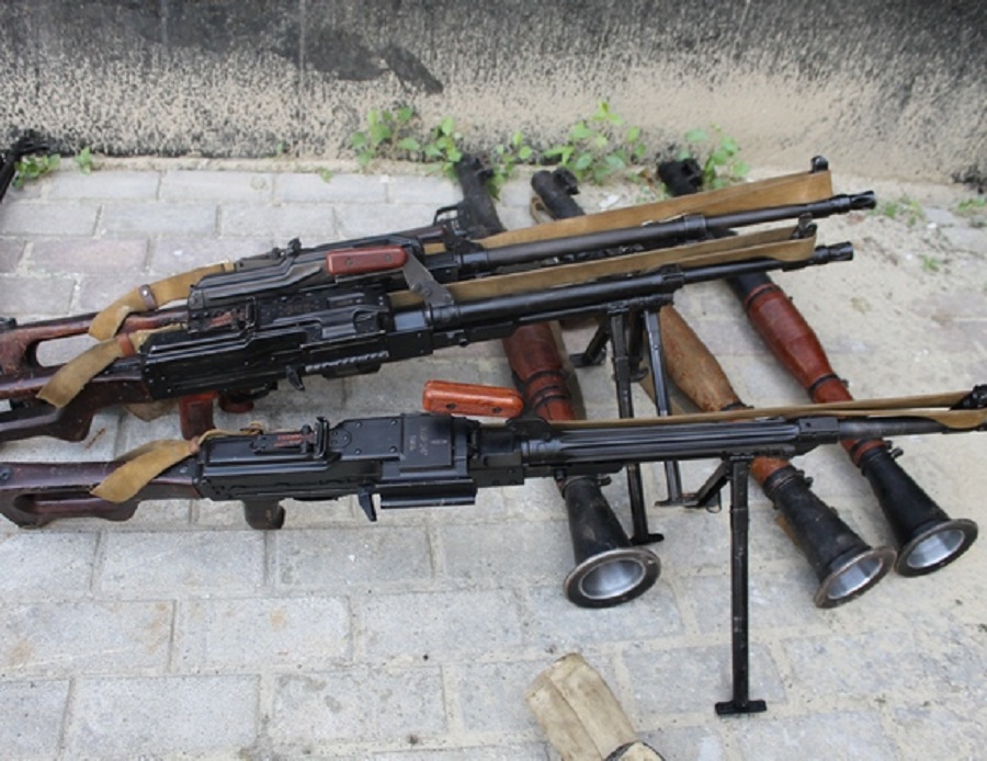 В тайнике обнаружено и изъято: автомат Калашникова, 11 пулеметов Калашникова, 7 одноразовых гранатометов, 3 противотанковых ракетных комплекса, 2 крупнокалиберных пулемета, автоматический станковый гранатомет, 3 миномета, 4 противотанковых гранатомета, значительное количество патронов различного калибра, гранатометных и минометных выстрелов.