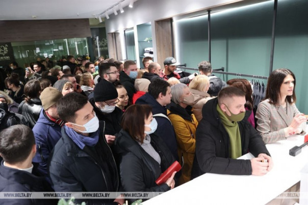 «Час пролетел как одна минута. Очень много людей, желающих. Берут не просто по 3-5. Люди приходят, берут по 40 коробок. Мы сегодня поработаем день и вечером проведем срез, посмотрим картину по продажам. Уже планируем заказывать дальше, дошивать одежду с полюбившимися фразами», — рассказала журналистам председатель концерна «Беллегпром» Татьяна Лугина спустя час после открытия магазина, добавив, что ажиотаж свидетельствует о том, что «насколько в нашей стране есть желание поучаствовать даже через такую форму, проявить консолидацию с общей политикой государства».