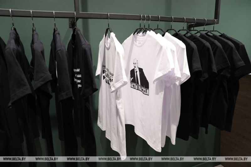 На футболках белого и черного цветов напечатаны цитаты Лукашенко: «Президентами не становятся, президентами рождаются!», «Не позволим нас наклонить. Любимую не отдают», «Факты на стол» и «Будет очень интересно. Начинайте шевелиться». Стоимость футболки 20 белорусских рублей (около 583 рос. руб), женское худи — 40 руб. (почти 1170 руб.), такая же модель для мужчины обойдется в 45 руб (примерно 1300 руб.).