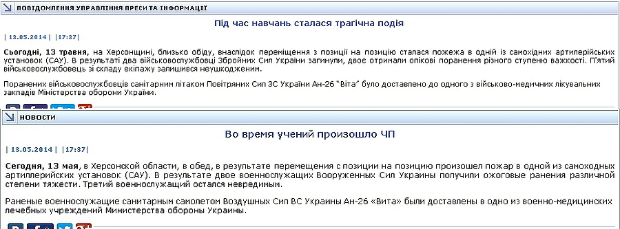 А вот и подробности взрыва САУ под Херсоном в правдивом переводе на сайте мин.обороны хунты. Как нетрудно заметить, 2 трупа при переводе потеряли:
