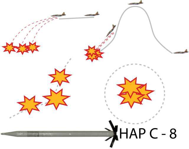 Сам заход был выполнен на оценку «неудовлетворительно» и удивительно, что украинский летчик вообще куда-то попал. Начнем с того, что ракеты после пуска с самолета летят к цели по баллистической траектории, а не по прямой. Чтобы разрывы были кучнее, пуск неуправляемых авиационных ракет (НАР) производится с пикирования. Мы в таких случаях, бывает, «падаем» под углом до 30 градусов. В том случае разрывы ракет ложатся либо в круг, либо в эллипс – это зависит от дальности и скорости. Особенно это важно для НАР С-8, которые не отличаются высоким могуществом боевой части.