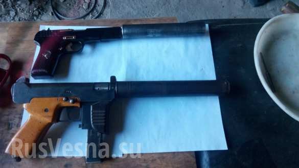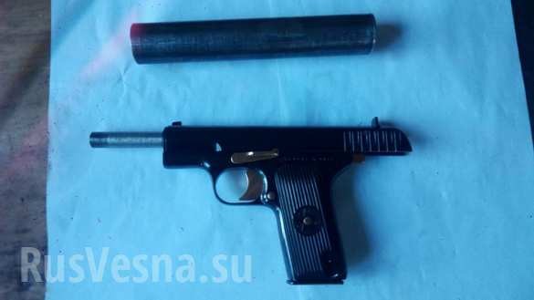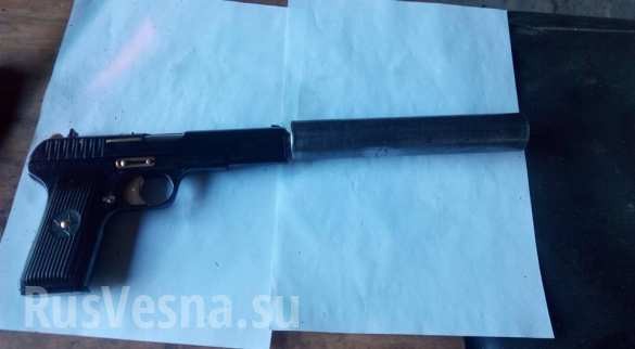 «Глухонемая Тётя Таня из Донбасса. 9×18 мм (пистолет ТТ, — прим. «Русской Весны»). Компоновка существенно изменена, ствол 6 нарезов, удлиненный под ПБС (прибор бесшумной стрельбы), установлен на раме. В компании глухонемых так же ПП (пистолет-пулемет, — прим. «РВ») местного производства оригинальных конструкций.