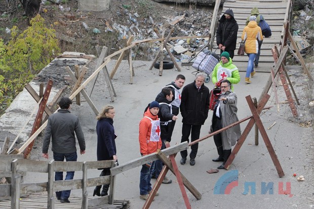 "Сегодня у нас был совместный выход на этот мост с представителями Красного Креста. Здесь был (глава делегации МККК на Украине) господин (Алан) Эшлиман", - рассказал уполномоченный представитель ЛНР на Минских переговорах Владислав Дейнего.