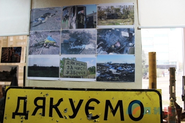 "Постановочных фотографий здесь нет - это все мгновения из жизни ополченцев. На экспозиции представлена репортажная съемка первого года войны в Донбассе. Это быт ополченцев, это добрые, но мужественные их лица, это результаты преступлений украинских военнослужащих: разрушенные дома и замученные до смерти мирные люди", - рассказал корреспондент ЛИЦ Мамай.