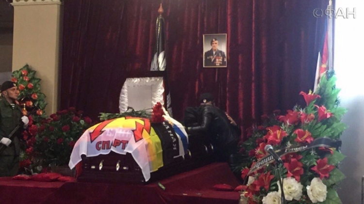 Перед гробом несколько человек в военной форме и с медалями на груди вынесли флаги Донецкой народной республики – такие же, как те, что сегодня приспущены по всему Донецку и за его пределами. Сам гроб был богато украшен цветами и накрыт флагом «Спарты» – того самого подразделения, в котором сражался Моторола, превратившись за последние два года военных действий на востоке Украины в настоящую легенду.