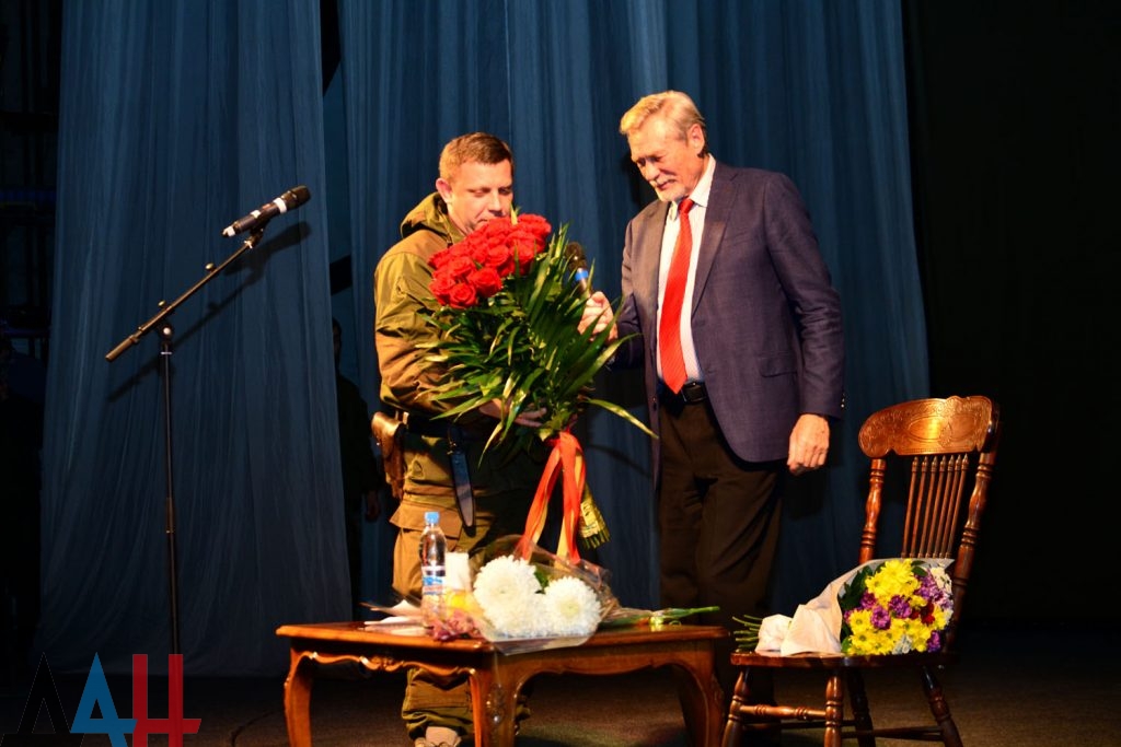 Творческий вечер советского киноактера и режиссера Александра Михайлова впервые в истории ДНР прошел сегодня в Донецком государственном академическом музыкально-драматическом театре. Концерт посетил Глава Донецкой Народной Республики Александр Захарченко.