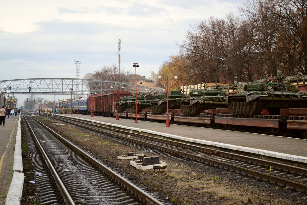 Украинские каратели перед большим зимним наступлением не перестают подтягивать боевые резервы на "восточный фронт". На днях Украина распечатала склады техники в Ивано-Франковске. Нехватка боевых бронеединиц вынудила оккупантов прибегнуть к использованию последних резервов, оставшихся со времен СССР. Теперь эта техника гигантскими составами по железной дороге движется в сторону Донецка, что, собственно, и фиксируют на камеры мобильных телефонов и фотоаапараты жители прифронтовых территорий.
