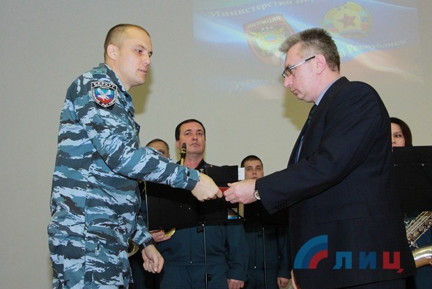 Лучшие сотрудники полиции получили медали и благодарственные грамоты главы ЛНР Игоря Плотницкого, а также Народного Совета, Совета министров и его министерств, администрации Луганска.