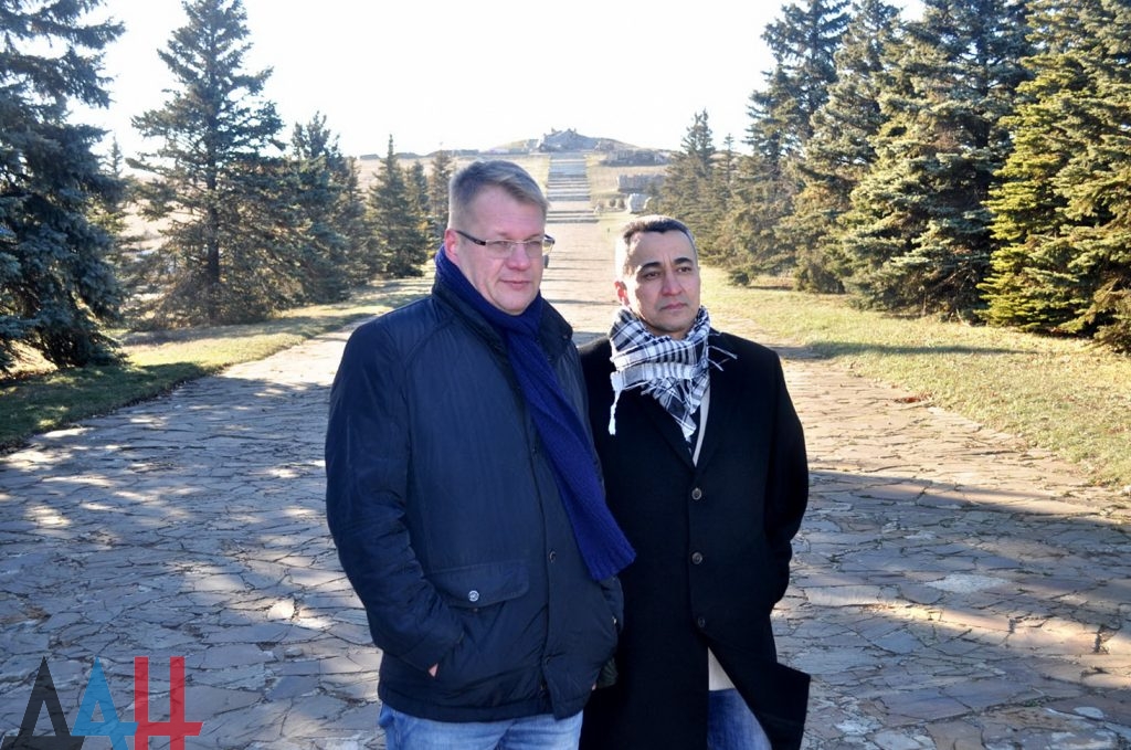 Общественники из РФ, представители региональной организации «Содружество» Ханты-Мансийского автономного округа Эдуард Логинов и Тахиржон Зайнутдинов посетили сегодня легендарный курган Саур-Могила и возложили цветы к месту захоронения бойцов ДНР, погибших при обороне стратегической высоты 2014 года.