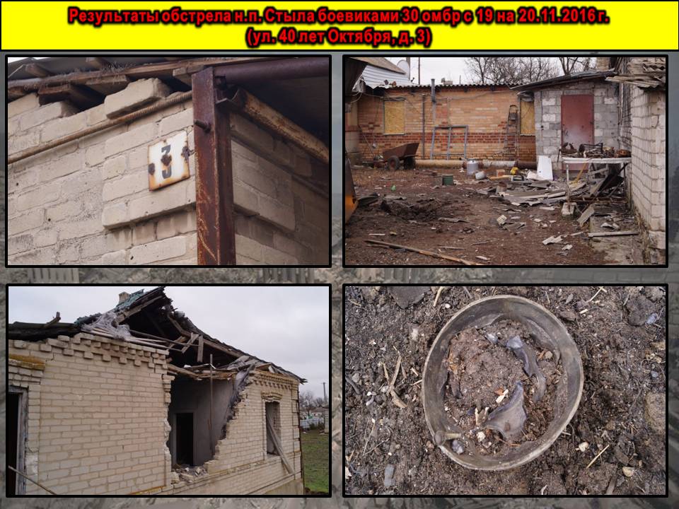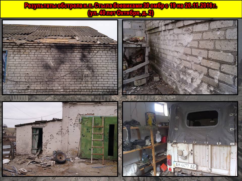 Установлено, что огонь из установок «Град» по селам Коммунаровка и Стыла в ночь на 20 ноября велся из района оккупированной украинскими силовиками Николаевки. Руководил обстрелами командир 30-й бригады ВСУ подполковник Иван Гараз, участвующий в карательной операции против народа Донбасса с весны 2014 года. Его действия предложено квалифицировать, в частности, как акты геноцида и нарушения законов и обычаев войны.