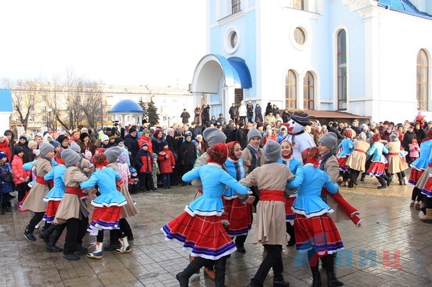 Глава ЛНР Игорь Плотницкий посетил Рождественские гуляния, состоявшиеся после праздничной литургии на территории столичного храма в честь иконы Божьей Матери "Умиление".