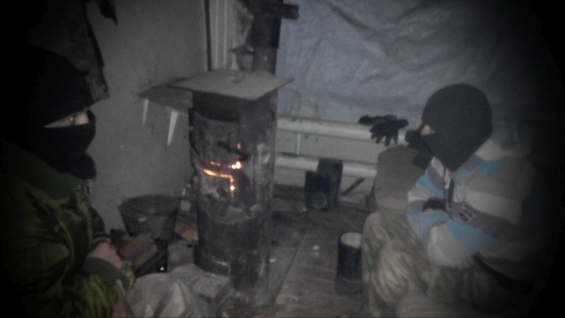 Мы с Дедом Морозом и подарками были восприняты с детским восторгом. Первым делом погрелись возле буржуйки – зима все-таки. Это – единственный источник тепла в этом полу разбитом здании: оно, фактически, и без окон, и без дверей. Горячее питание ребята тоже готовят при помощи этой буржуйки, или же на костре, который разводят в более-менее безопасном месте, когда обстрелы затихают.