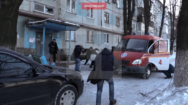 Один из снарядов выбил двери и окна в одном из подъездов, ранения получила местная жительница. Затем снаряд разорвался рядом с автомобилем журналистов, который стоял вдали, осколками у него были выбиты стёкла.