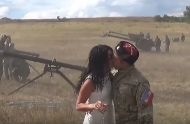 Свадьба на передовой: в Сеть попали кадры церемонии под торжественные залпы «Градов»