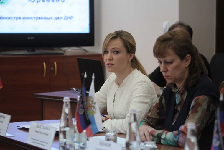 В заседании круглого стола участвовали: советник Главы ДНР, политолог Александр Казаков, и.о. министра иностранных дел Наталья Никонорова, министр образования и науки ДНР Лариса Полякова, и.о. министра труда и социальной политики ДНР Лариса Толстыкина, глава МЧС ДНР Алексей Кострубицкий, и.о. министра здравоохранения ДНР Александр Оприщенко, политолог Денис Денисов, а также представители ведомств, которые участвуют в Гуманитарной программе.