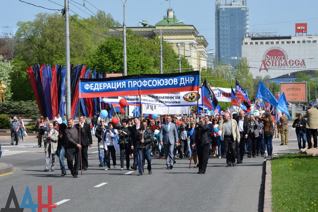 Массовое шествие по случаю Первомая – праздника весны и труда – прошло сегодня в центре Донецка