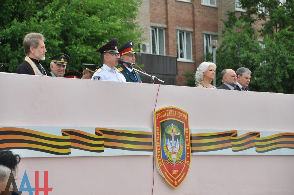 Торжества начались с поднятия государственного флага. Далее был зачитан приказ начальника Донецкого высшего общевойскового командного училища Михаила Тихонова об окончании учебы и выдаче документов об образовании выпускникам лицея, который находится в подчинении ДонВОКУ.