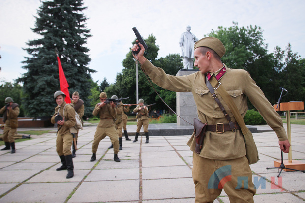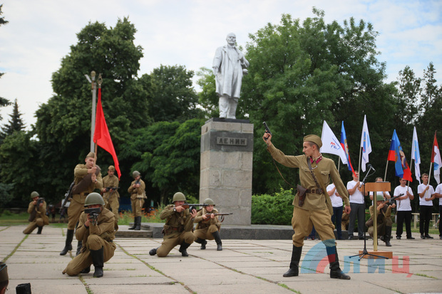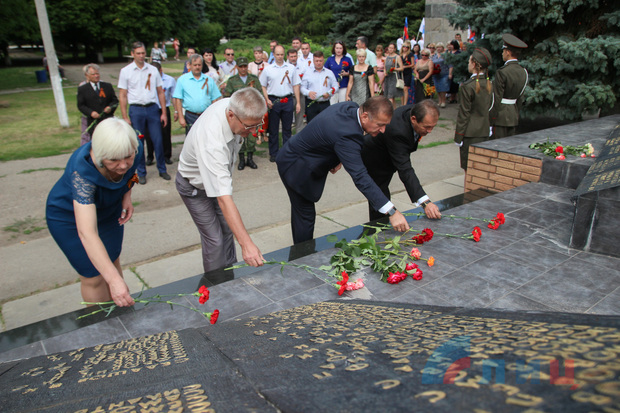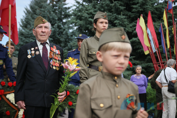 Ранним утром в сквере героев Великой Отечественной войны Славяносербска состоялся торжественный митинг-реквием, в котором приняли участие местные жители, ветераны, главы городских и районных администраций ЛНР, творческие коллективы Республики.