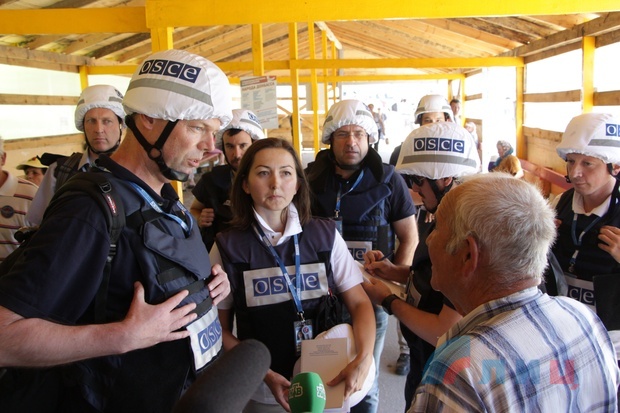 После непродолжительного осмотра пункта пропуска ЛНР делегация ОБСЕ во главе с первым замглавы СММ проследовала на подконтрольную Киеву территорию.