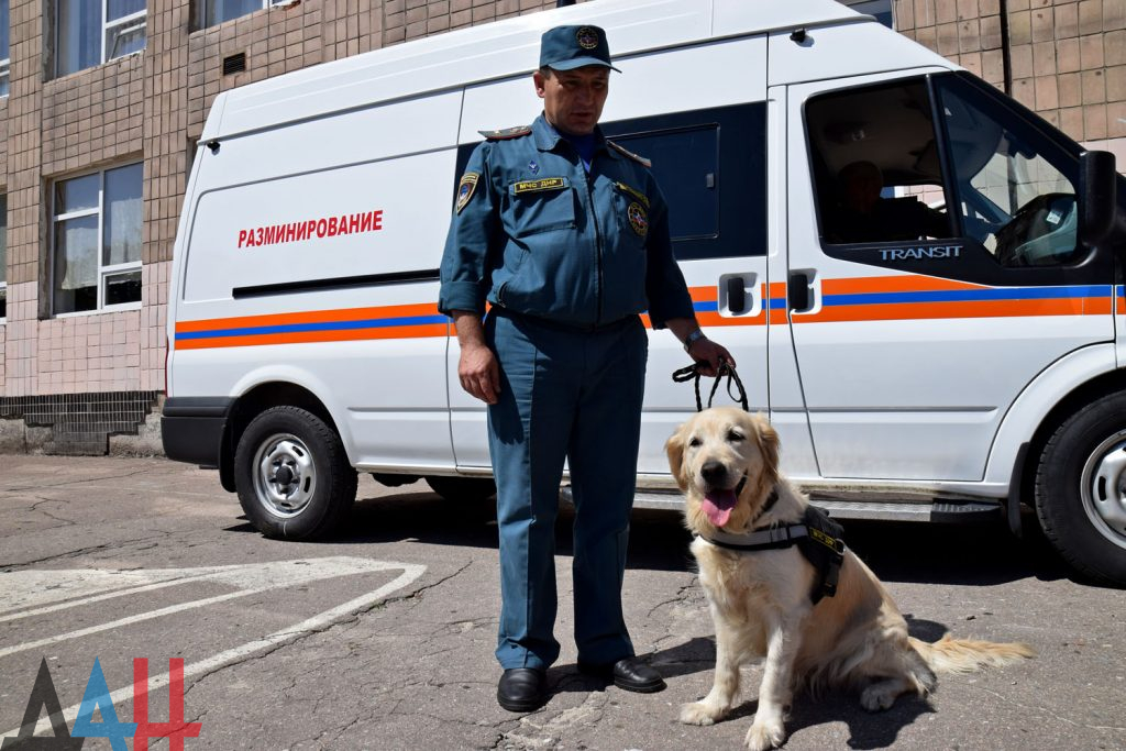 Кинологическое отделение МЧС ДНР проводило обследование: Дома Правительства ДНР, Аппарата Народного Совета ДНР, Центра славянской культуры, складов гуманитарной помощи, здания Драматического театра, Театра оперы и балета, Музея Великой Отечественной войны, площади Ленина, Ботанического сада, заводов «Силур» и Юзовского металлургического и других предприятий Республики.