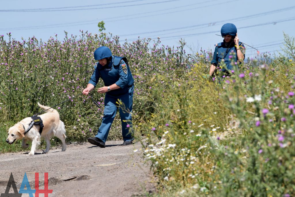 Сегодня, 19 июля, сотрудники МЧС ДНР продемонстрировали работу кинологического отделения. Саперы провели обыск помещений, автомобильных и грунтовых дорог. Кроме этого, четвероногие спасатели нашли противотанковую мину, которая впоследствии была уничтожена. Об этом сообщает корреспондент официального сайта Донецкой Народной Республики.