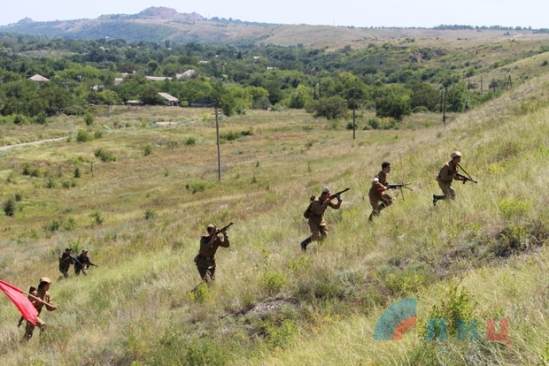 Мероприятие, состоявшееся на одном из холмов северной части Донецкого кряжа в четырех километрах от села Поповка, где размещен лагерь участников сборов, прошло под эгидой МВД ЛНР и Луганского военно-исторического общества (ЛВИО) "Память Донбасса".
