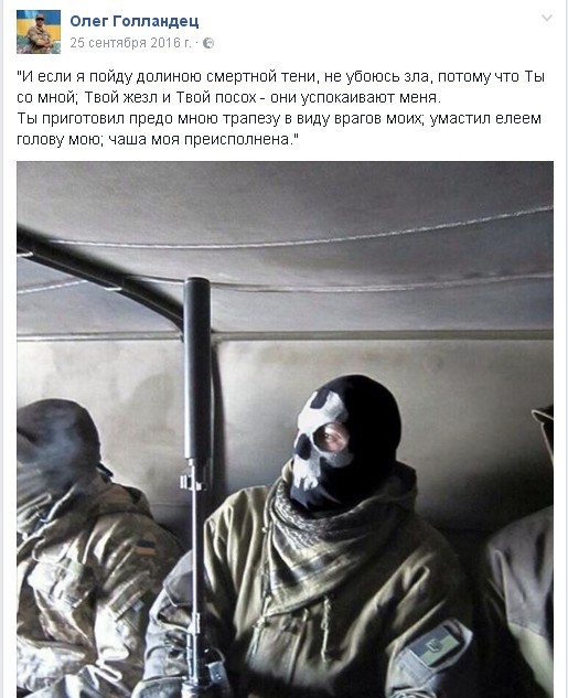Если полистать его страницу, то наши силовики, арестовали вероятно не простого рядового, а упыря, прошедшего АТО, на руках которого достаточно много крови наших жителей, как мирных, так и военных. (https://www.facebook.com/profi...)