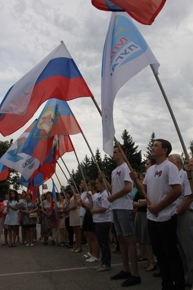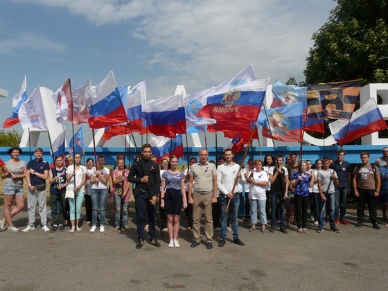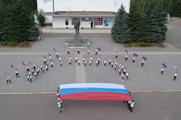 Молодежные активисты Краснодона в рамках праздничных мероприятий, приуроченных ко Дню Государственного флага России, ознакомились с историей возникновения праздника, узнали значение цветов триколора и флага ЛНР. Акция завершилась красочным флешмобом, в ходе которого юноши и девушки скандировали "Флаг Державы – символ славы!", составив флаг Российской Федерации под песню известного российского исполнителя Олега Газманова "Вперед, Россия!".