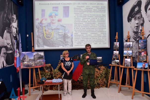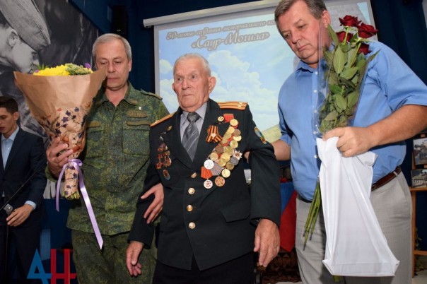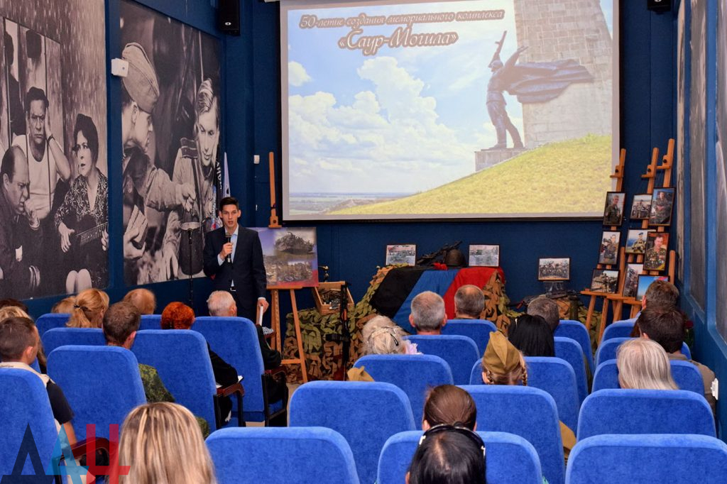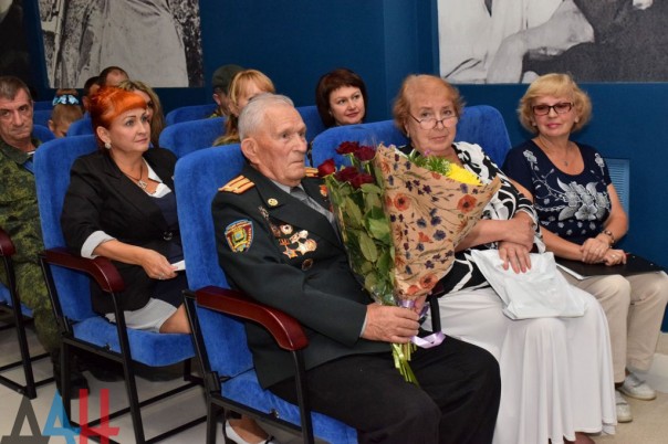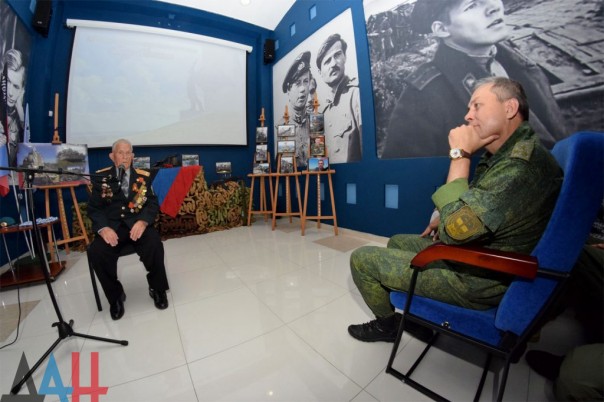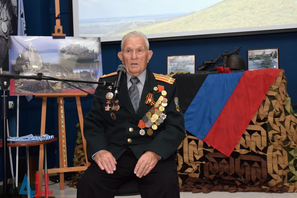 Ветеран Великой Отечественной войны Владимир Николаевич Хлапов поделился воспоминаниями фронтовых лет, рассказал о своем непосредственном участии в боях на Саур – Могиле. По окончании мероприятия, директор военно-исторического музея Великой отечественной войны Людмила Декурно поблагодарила организаторов за переданные музею личные вещи погибшего полковника Вооружённых сил ДНР Кононова Евгения Юрьевича.