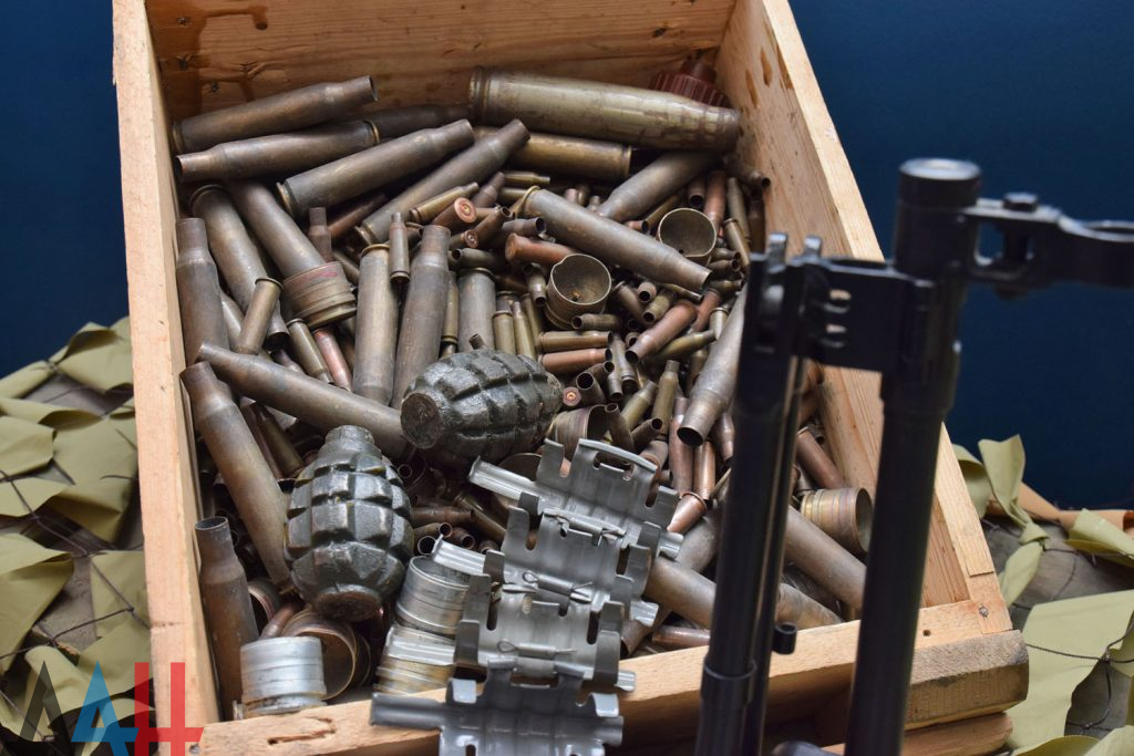 — артиллерийский снаряд калибра 152 мм – 8 ед.; — артиллерийский снаряд калибра 45 мм времён ВОВ – 1 ед.; — артиллерийский снаряд калибра 30 мм – 150 ед.; — артиллерийский снаряд калибра 23 мм – 138 ед.; — ВОГ-25 – 9 ед.; — ВОГ-17 – 1 ед.; — патрон калибра 12,7 мм – 1 ед.; — патроны калибра 7,62 мм – 8 ед.; — осветительная ракета – 2 ед.; — взрыватели – 2 ед.; — РКГ (ручная кумулятивная граната) – 2 ед.; — элемент активной брони – 1 ед.