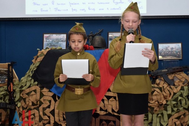 В рамках проекта состоялась презентация фильма, созданного Министерством информации, «Освобождение Донбасса 14/41». Кроме того, школьники прочитали письма детей войны 1941 и 2014 годов. Мы обязаны победить, чтобы наши дети больше никогда не увидели и не услышали звук падающего снаряда», — прокомментировал детей Эдуард Басурин.
