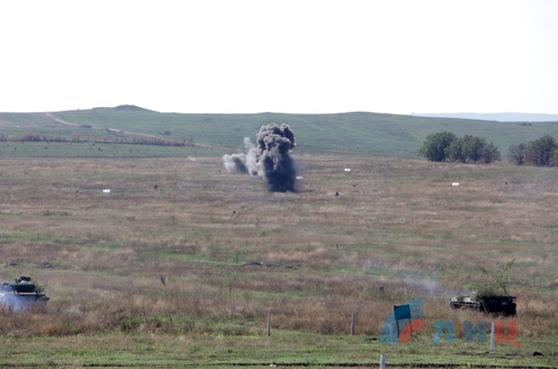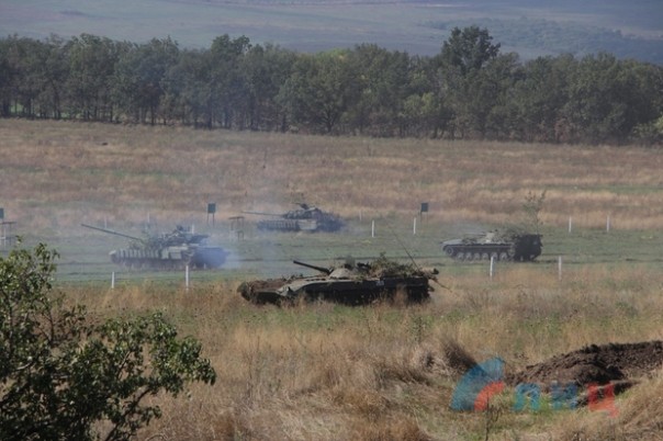 Народная милиция ЛНР провела учения, задействовав в них более 100 единиц техники