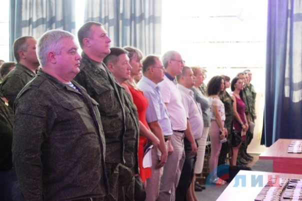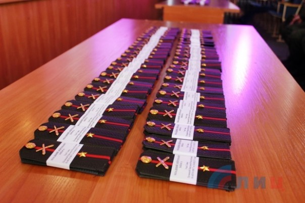 Ранее около 100 курсантов военной кафедры ЛНУ имени Даля, которые успешно сдали итоговые экзамены по программе подготовки офицеров артиллерийских подразделений и приняли присягу на верность Луганской Народной Республике.
