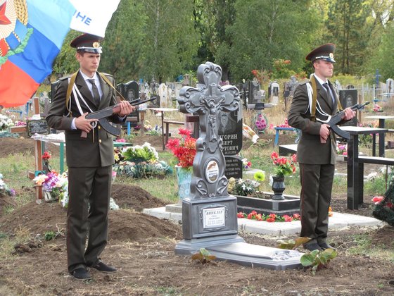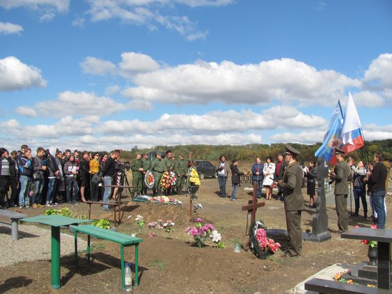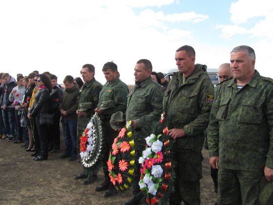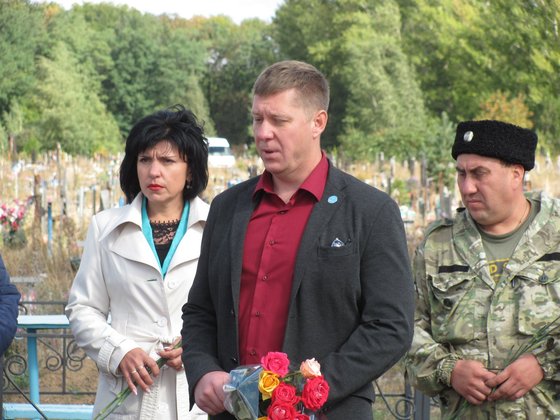 Присутствующие почтили память погибших освободителей Донбасса минутой молчания.