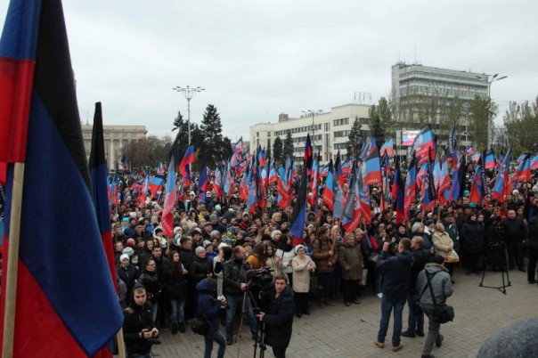 После своего выступления Глава Республики Александр Захарченко дал команду поднять над главной площадью столицы самый большой Флаг Донецкой Народной Республики, который был сшит представителями всех городов ДНР, в том числе Славянска, Мариуполя и другими.