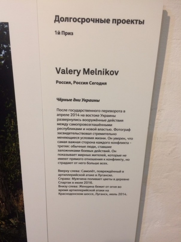 21 сентября в петербургском арт-пространстве "Лофт Проект Этажи" в шестой раз открылась выставка финалистов конкурса World Press Photo. В этом году на конкурс поступило свыше 80 тысяч снимков, сделанных фотографами из 125 стран. Фотокорреспондент МИА "Россия сегодня" Валерий Мельников стал победителем в номинации "Долгосрочный проект". Его проект "Черные дни Украины" рассказывает о конфликте на юго-востоке Украины, на Донбассе. Он был снят в течение трех лет с самого начала конфликта по сегодняшний день. Лауреат рассказал в интервью корреспонденту Кириллу Чулкову о своих командировках на Донбасс и отношении к войне.