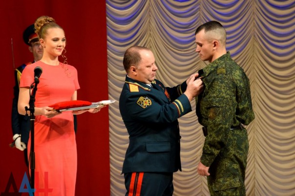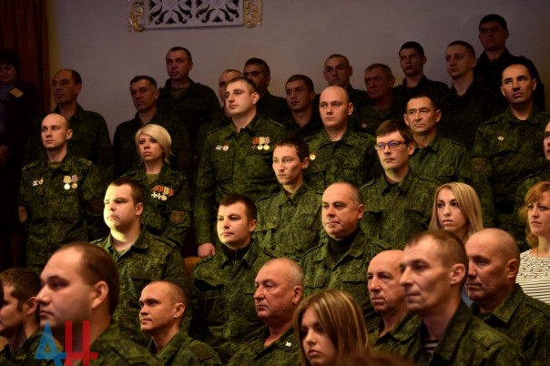Поздравить бойцов пришли Глава Республики Александр Захарченко, министр обороны Владимир Кононов и другие официальные лица.
