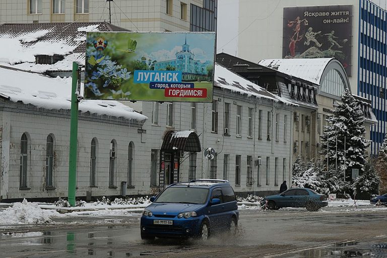 «Русская душа… Ласковая, словно лучи солнца на рассвете», — гласил билборд у Генпрокуратуры ЛНР, под которым застыл камуфлированный автобус. Пройти мимо такого контраста было сложно, и я достал смартфон, чтобы сделать кадр. Не успела фотография сохраниться в телефоне, как из автобуса вылетели люди в масках с автоматами наперевес…