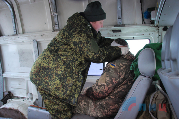 Военнослужащие Народной милиции ЛНР доставили в больницу раненого украинского диверсанта, которого на минном поле бросили его сослуживцы. Об этом с места событий передает корреспондент ЛИЦ.