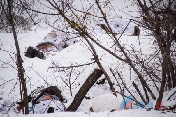 Три украинских диверсанта погибли и два получили ранения 23 ноября при попытке проникнуть для совершения провокаций на позиции Народной милиции в районе поселка городского типа Фрунзе. Сегодня военнослужащие Народной милиции и ветераны Афганистана эвакуировали из района линии соприкосновения тела погибших киевских силовиков.