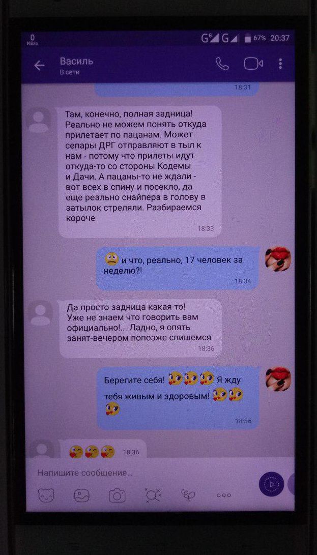 Переписка журналистки «РБК-Украина» с офицером пресс-центра штаба «АТО» Василием Лабаем, подтверждающая большие потери укрофашистов