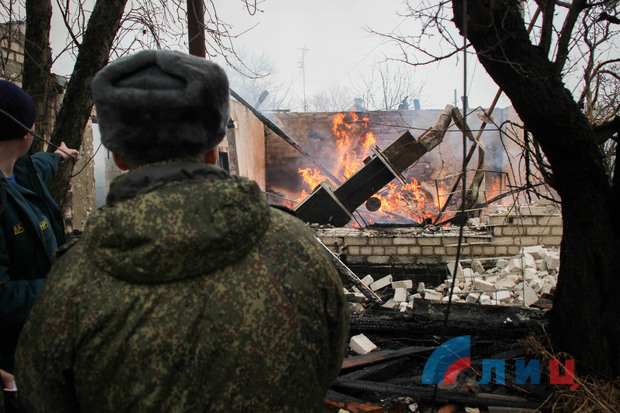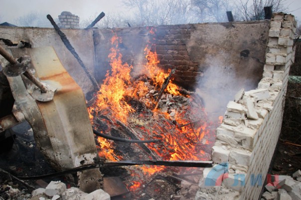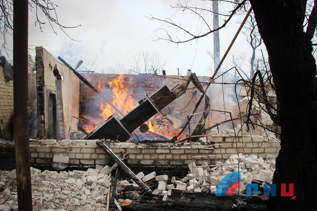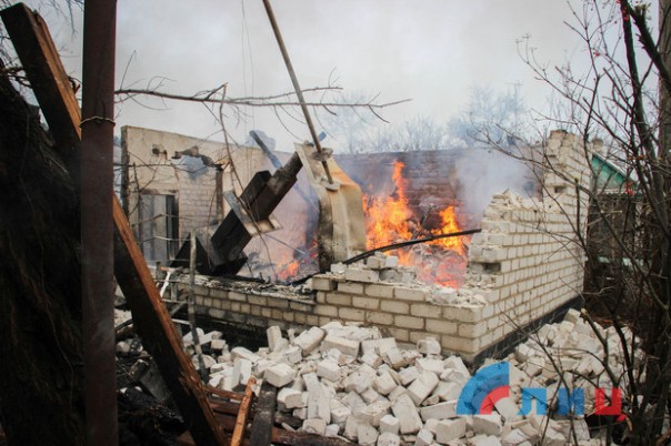 Укрофашисты обстреляли пригород Луганска, сгорел дом, три повреждены, повредили три ЛЭП.