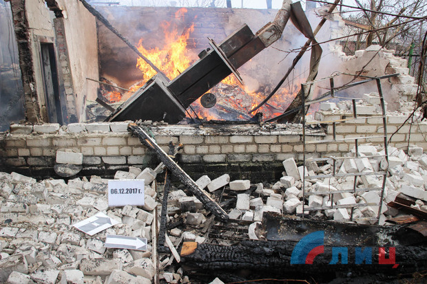 Сводка от НМ ЛНР 6.12.2017. Укрофашисты обстреляли пригород Луганска, сгорел дом, три повреждены. ВСУ планируют выдать трупы из моргов за "жертв обстрелов"